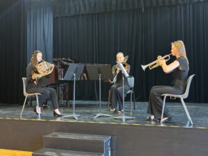 Hornové trio (Mikuláš Anděl, Cecilie Dvořáková, Viktorie Soukupová), vedené Radkou Chmelařovou